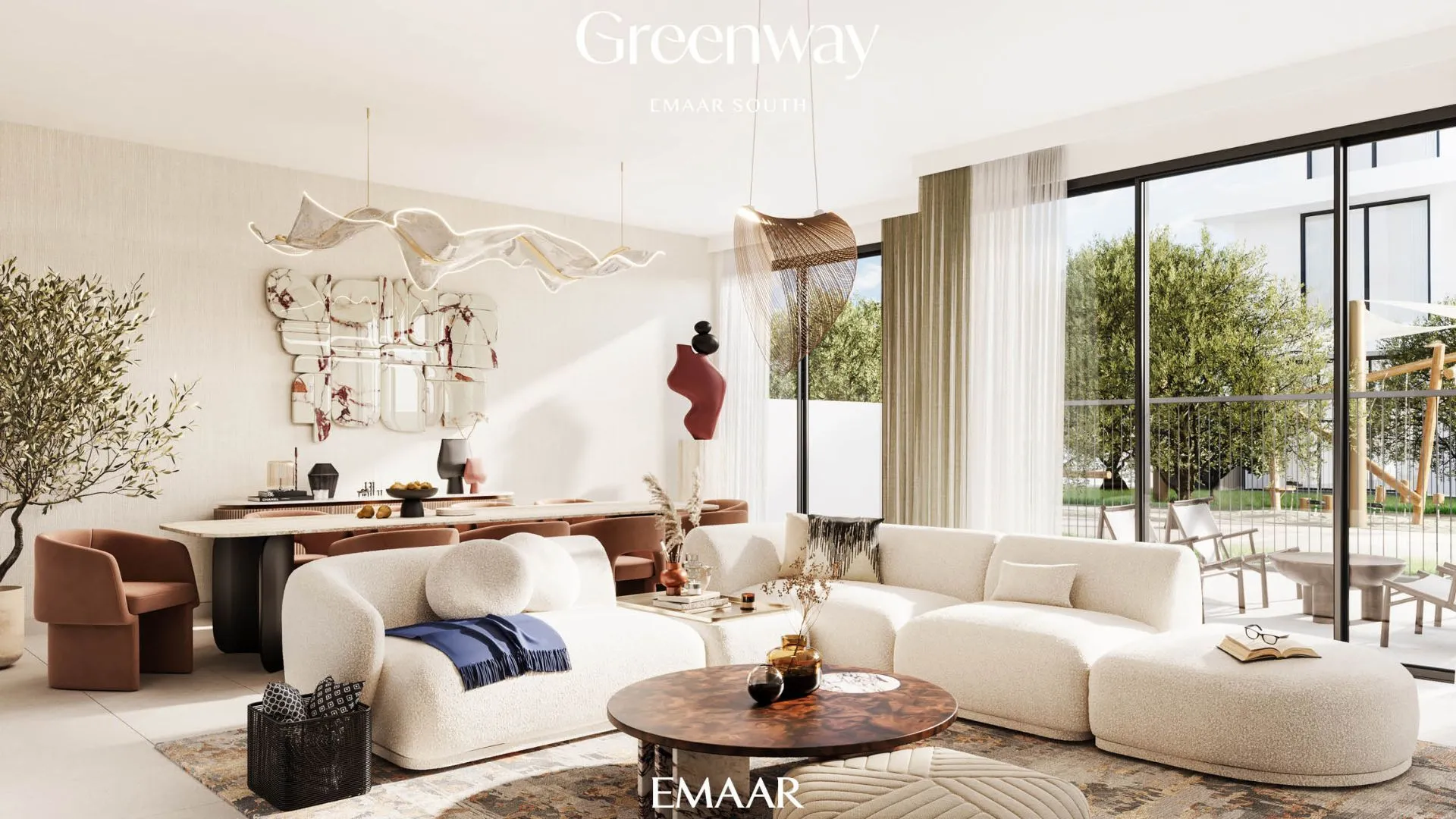 Greenway at Emaar South by Emaar Properties is a premium residential development offering elegantly designed 3 and 4-bedroom townhouses. Nestled within the vibrant Emaar South community, this exclusive enclave comprises 232 residences, thoughtfully arranged in clusters of four, providing a harmonious blend of privacy and community living. Each townhouse features spacious layouts, modern facades, and luxurious interiors with earthy tones, complemented by floor-to-ceiling windows that offer panoramic views of the lush green surroundings and the adjacent 18-hole championship golf course. Residents can choose between classic and modern facade designs to suit their preferences. The community emphasizes a family-friendly lifestyle, boasting amenities such as a community center, infinity pool, gymnasium, health club, children’s play areas, retail outlets, and landscaped parks. Strategically located, Greenway offers easy access to key destinations, including Al Maktoum International Airport, Expo City Dubai, and Downtown Dubai. With prices starting from AED 3.15 million and a flexible 10/80/10 payment plan—10% on booking, 80% during construction, and 10% on handover—Greenway presents an exceptional opportunity for families and investors seeking a tranquil yet connected lifestyle. The handover is scheduled for May 2028, making it an ideal choice for those looking to invest in a sustainable and family-friendly community.